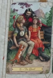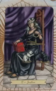 This is a card of fairness, truth, and balance in the daily details of your life. The figure in the card may be blindfolded, but she has moved that blindfold and can see. What are you bringing out into the world? It ties into the upcoming retrogrades about the need for personal ethics, even though we are living in a world right now that often has none. The way to destroy the Devil’s power over you in the first card is to stay true to your personal sense of integrity. Each of us doing that leads to a collective defeat, without capitulation or appeasement.